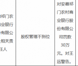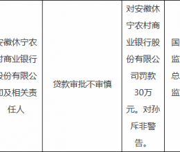 贷款审批不审慎,安徽休宁农商行被罚30万元