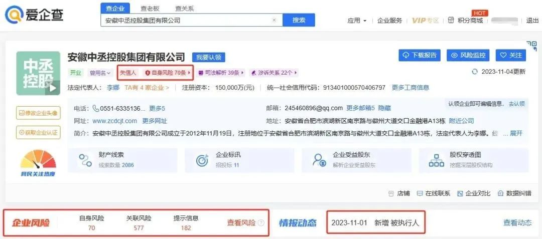 此外,安徽中丞控股集团在安徽多地市的分公司也多次被列为失信人和被执行人。