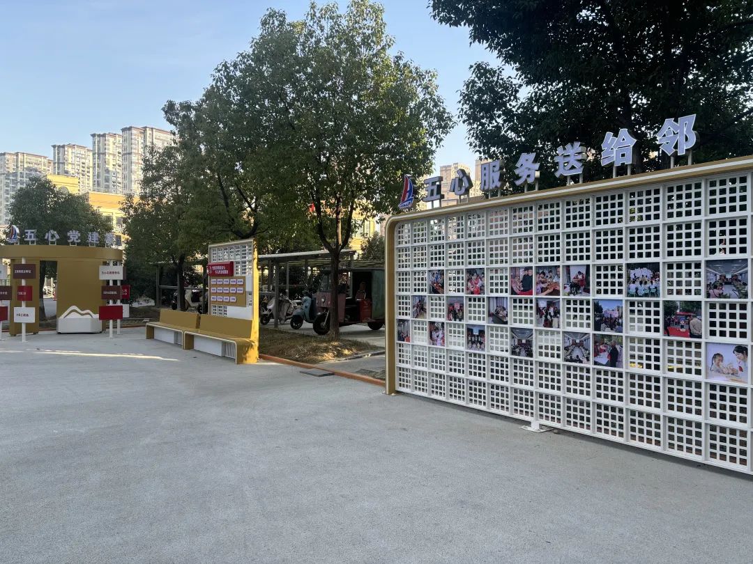 五里墩社区建成初期,由于经费不足,龙河苑小区党群服务站暂无独立场地。社区居民办事不便,为满足居民需求,党支部多次实地考察并召开会议,最终决定利用8号楼架空层修建服务站,并扩展小广场作为补充。在服务站内,这里有提供饮水、免费网络、阅读区和老年人关怀服务等,同时打造“夕阳汇剧场”满足了老年人的文化娱乐生活,在室外,聚焦“一老一小”服务需求,不仅有供老年人休闲的座椅,还安装了儿童游玩设施,让老人和儿童在相互陪伴中更加融洽,为小区增添了和谐温馨的氛围。