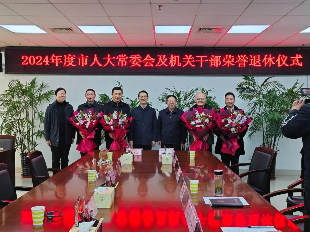 2月19日下午,市人大常委会举行2024年度市人大常委会及机关干部荣誉退休仪式。市人大常委会主任付新安看望退休干部并与他们合影留念。市人大常委会党组副书记、一级巡视员孟祥新参加并讲话。市人大常委会秘书长许海东主持仪式。