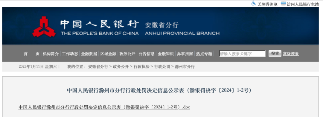 近日,中国人民银行安徽省分行披露行政处罚信息,因未按规定重新识别客户身份,安徽明光农村商业银行股份有限公司被罚款28万元。