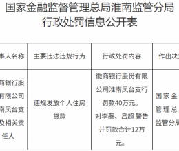 违规发放个人住房贷款,徽商银行淮南凤台支