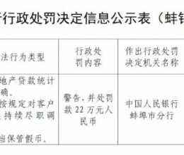 因房地产贷款统计不准确等,中信银行蚌埠分