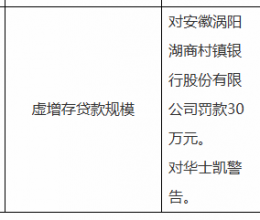 虚增存贷款规模!安徽涡阳湖商村镇银行被罚