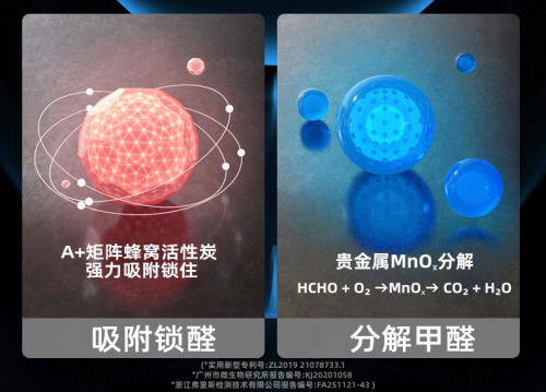 4. 后端分解层:曼尼希反应与贵金属催化协同,将甲醛彻底分解为无害的水和二氧化碳