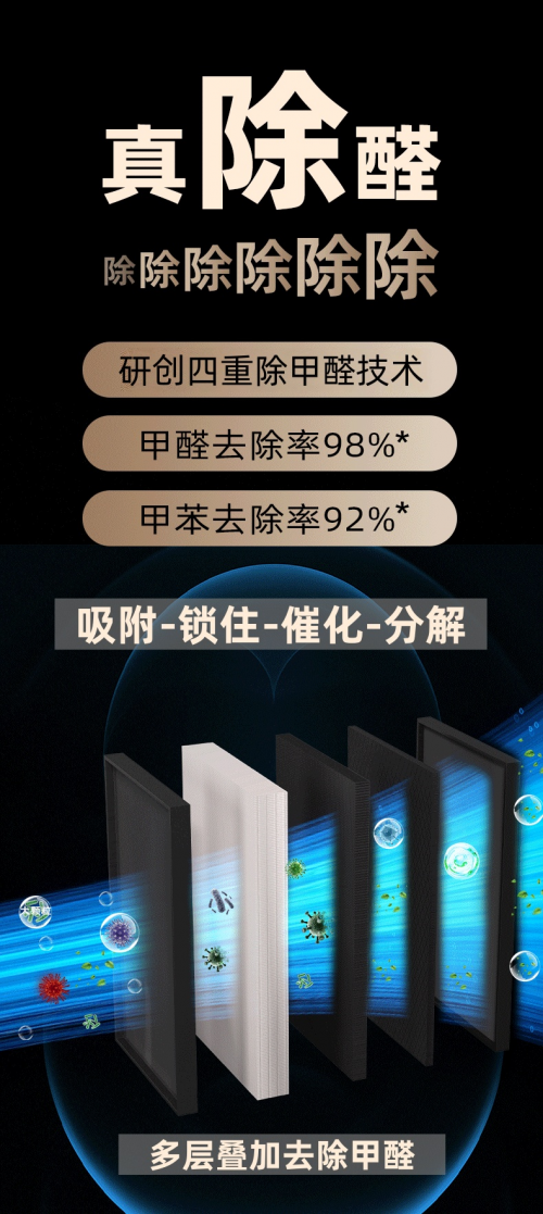 实际寿命:得益于四重分解技术,滤网更换周期长达12-18个月