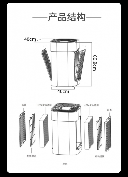 | 臭氧释放 | 0臭氧 | 纯物理+催化分解,无紫外线/等离子风险 |