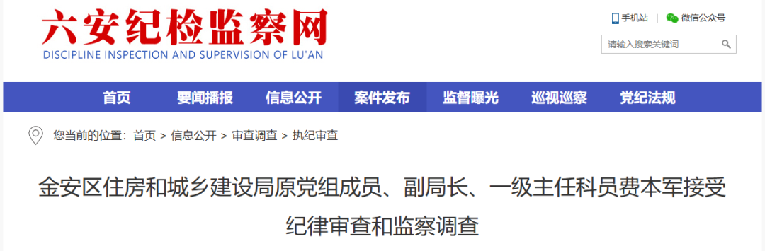 六安纪检监察通报:费本军被查