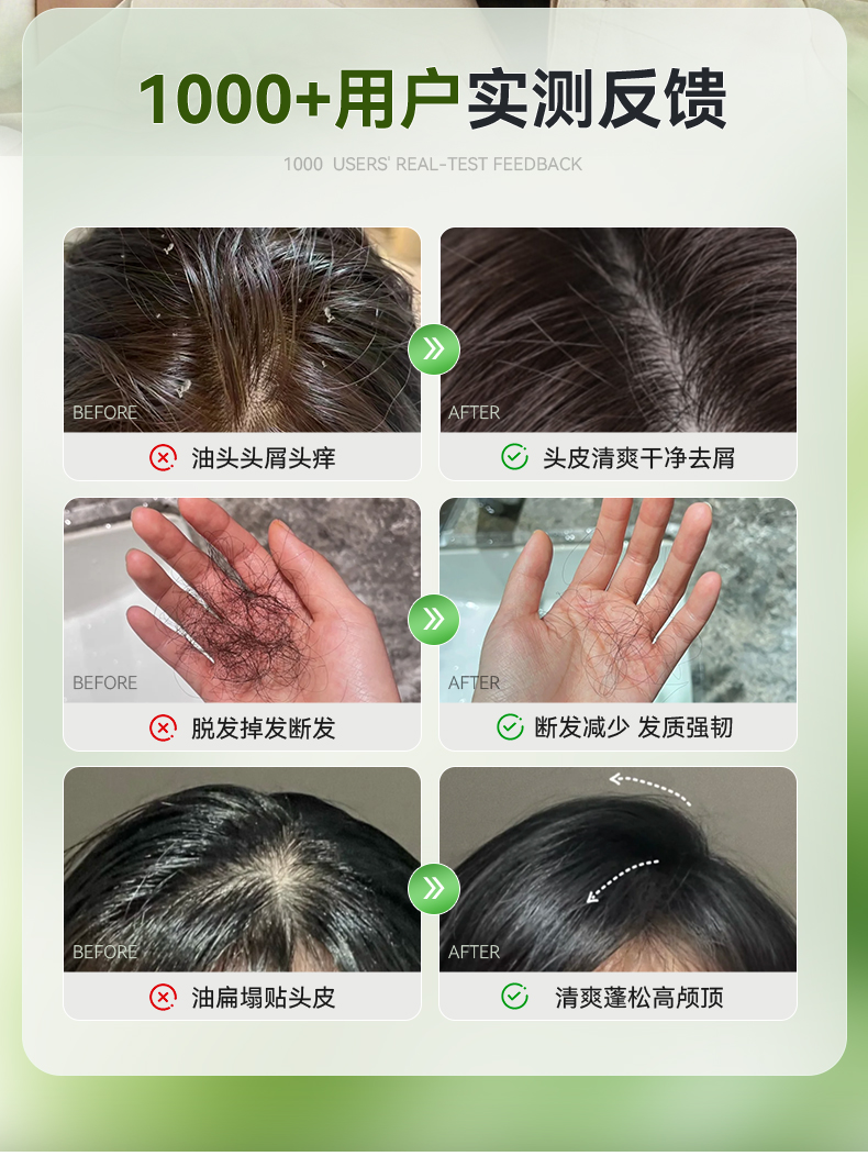 • 小张(油头+头屑):“以前每天都要洗头,不然头屑就冒出来。现在隔两天洗一次,头皮还是很清爽,头屑也没回来。”