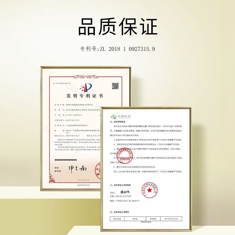 1. 权威资质保障:持有国家发明专利(ZL 2018 1 0927315.9),通过第三方安全评估报告,符合《化妆品安全技术规范》